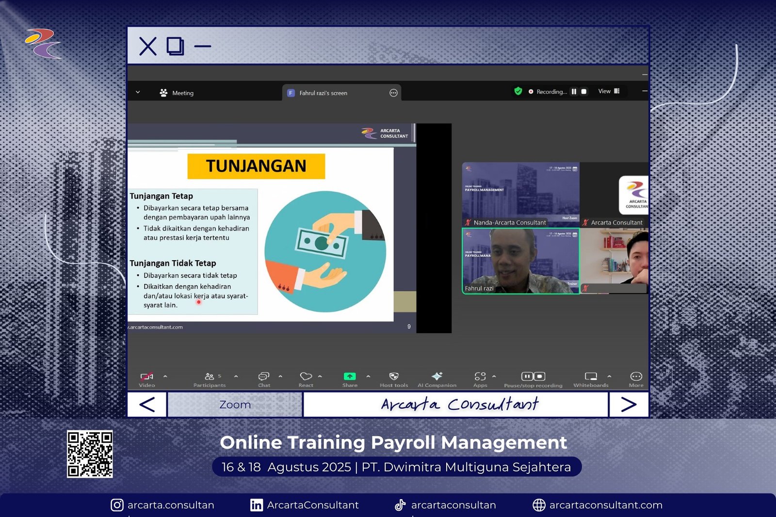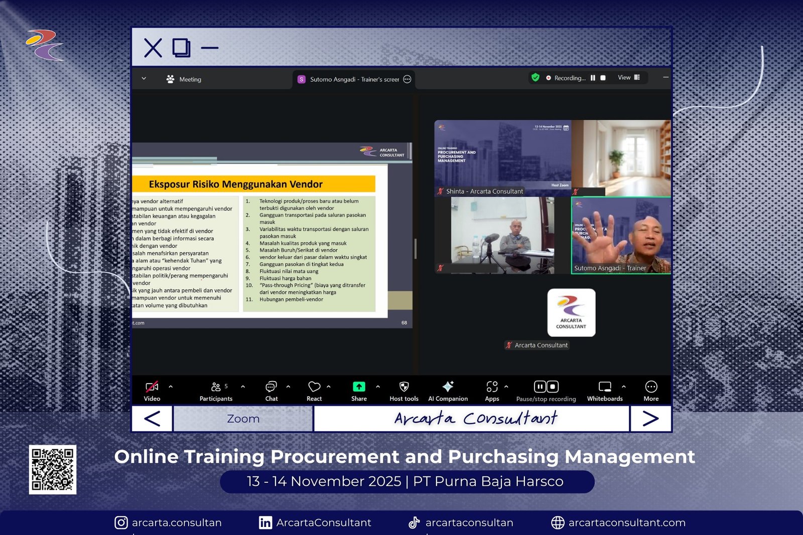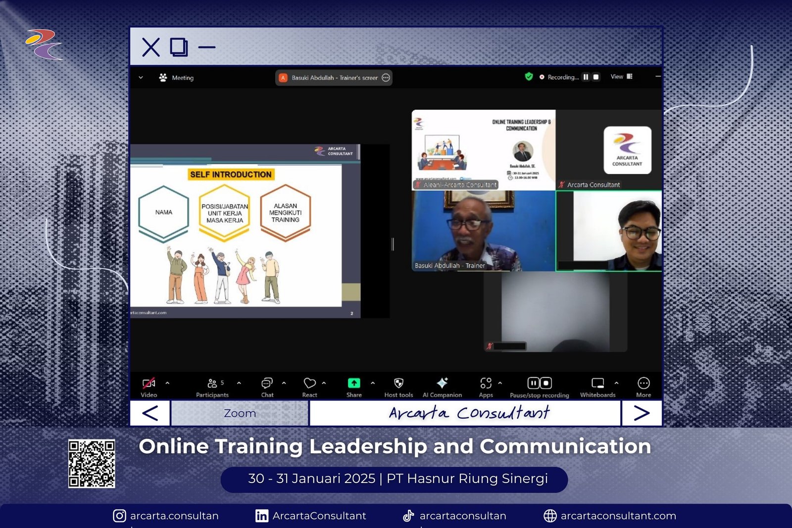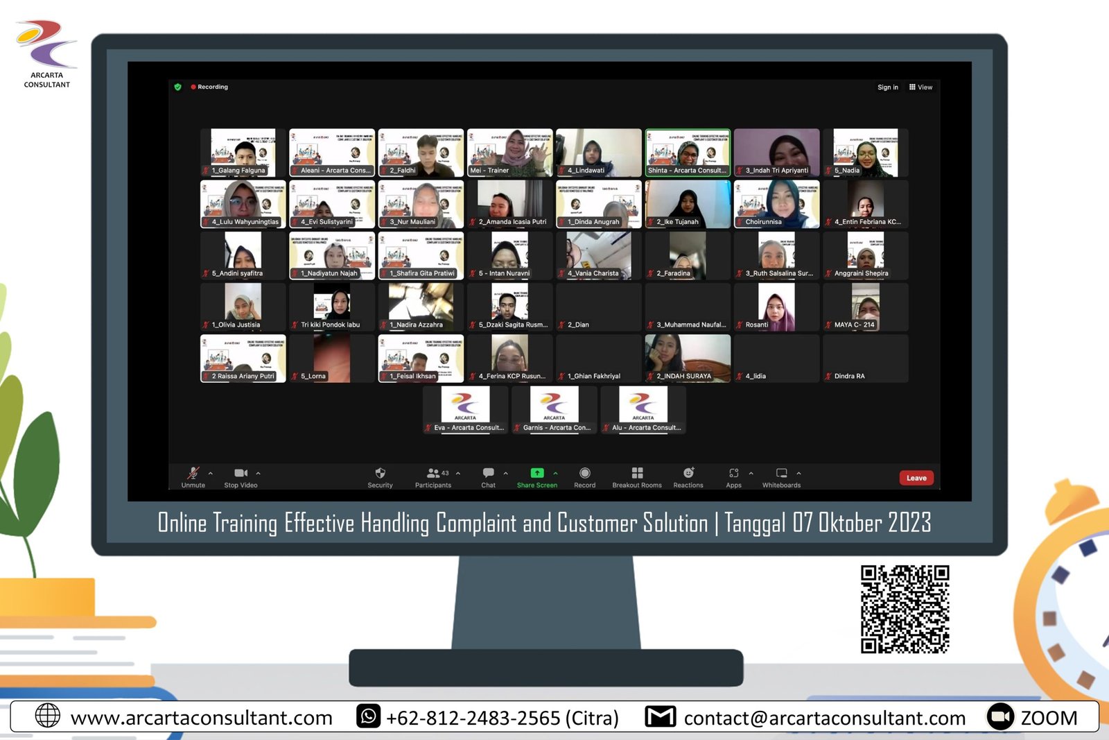 Kami bangga menjadi bagian dari perjalanan pengembangan SDM di berbagai perusahaan ternama. Galeri ini menampilkan momen-momen pelatihan langsung bersama klien kami yang telah mempercayakan pengembangan SDM mereka melalui program offline dan online training bersama Arcarta Consultant.