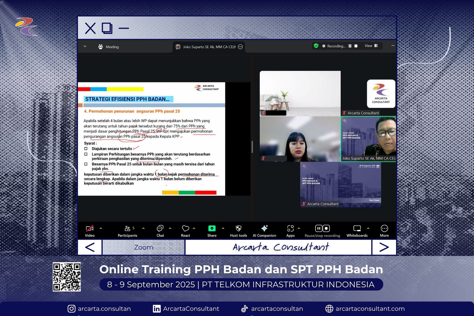 PT Ardana Cakyakirta Consultant, dikenal sebagai Arcarta Consultant, adalah perusahaan penyedia jasa pelatihan (provider training) dan konsultan manajemen profesional yang telah berpengalaman sejak tahun 2011. Kami menyelenggarakan berbagai program seminar, public training, dan in-house training, baik secara daring (online) maupun luring (offline).