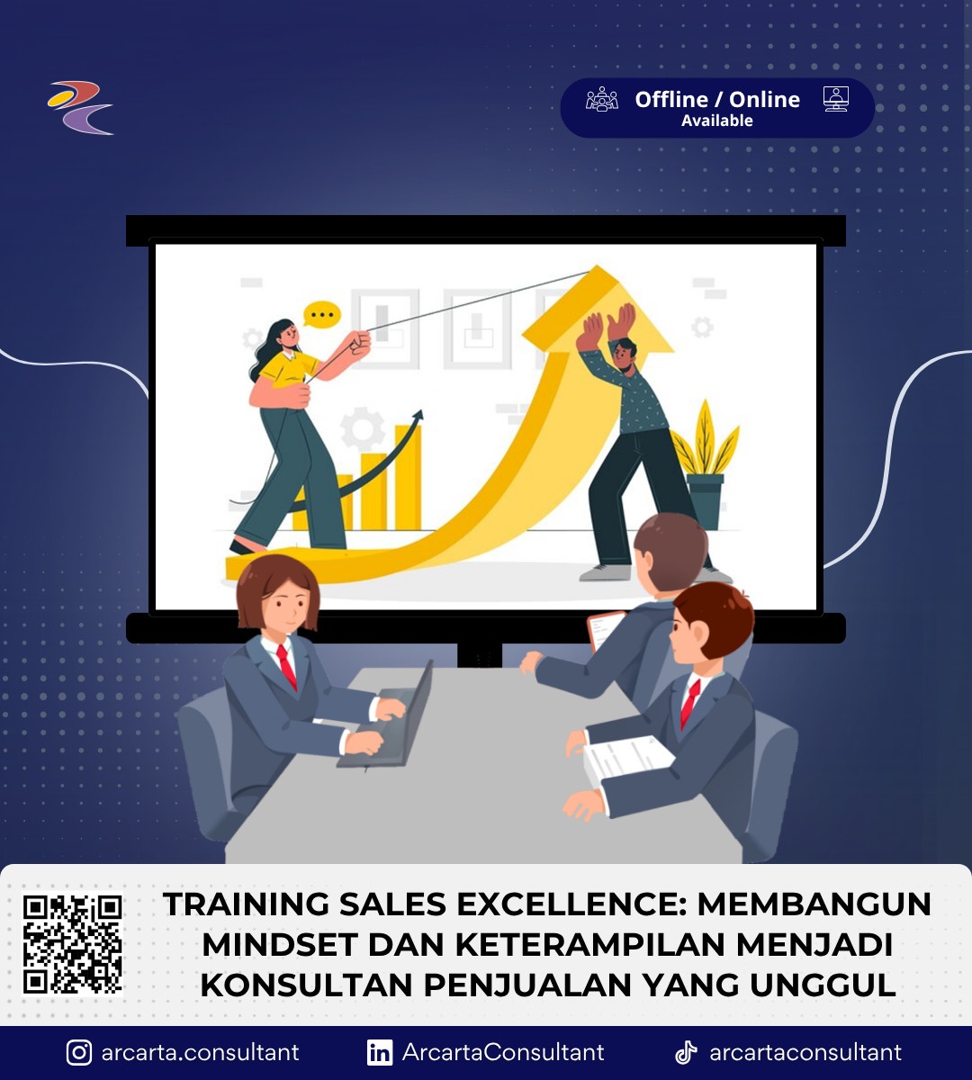 Pelatihan Sales Excellence ini dirancang untuk membantu peserta mengembangkan keterampilan dan mentalitas yang diperlukan untuk menjadi konsultan penjualan yang unggul. Peserta akan menggali aspek-aspek kunci dalam penjualan, dari membangun mindset yang sukses hingga mengasah keterampilan komunikasi, negosiasi, dan pemecahan masalah.