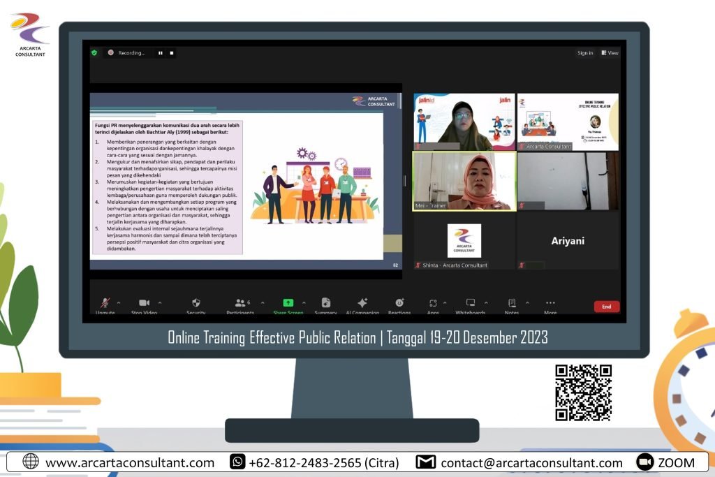 Meningkatkan reputasi sebuah organisasi atau perusahaan dan memperkuat hubungan dengan customer merupakan ketrampilan dan strategi praktis yang mutlak diperlukan oleh personil-personil yang bertugas pada divisi Public Relations. Effective Public Relations akan mengarahkan kita mennjadi sukses sesuai dengan fungsinya melalui berbagai aspek penting dalam bidang Public Relations termasuk keahlian vital dalam memanfaatkan media, mengorganisir berbagai kegiatan (event), serta menghasilkan materi publikasi yang persuasif. Selain itu training ini juga akan memberikan teknik dalam meyakinkan klien mengenai kelebihan organisasi serta kiat-kiat dalam membangun hubungan yang bagus dengan public dan melakukan kampanye publisitas.